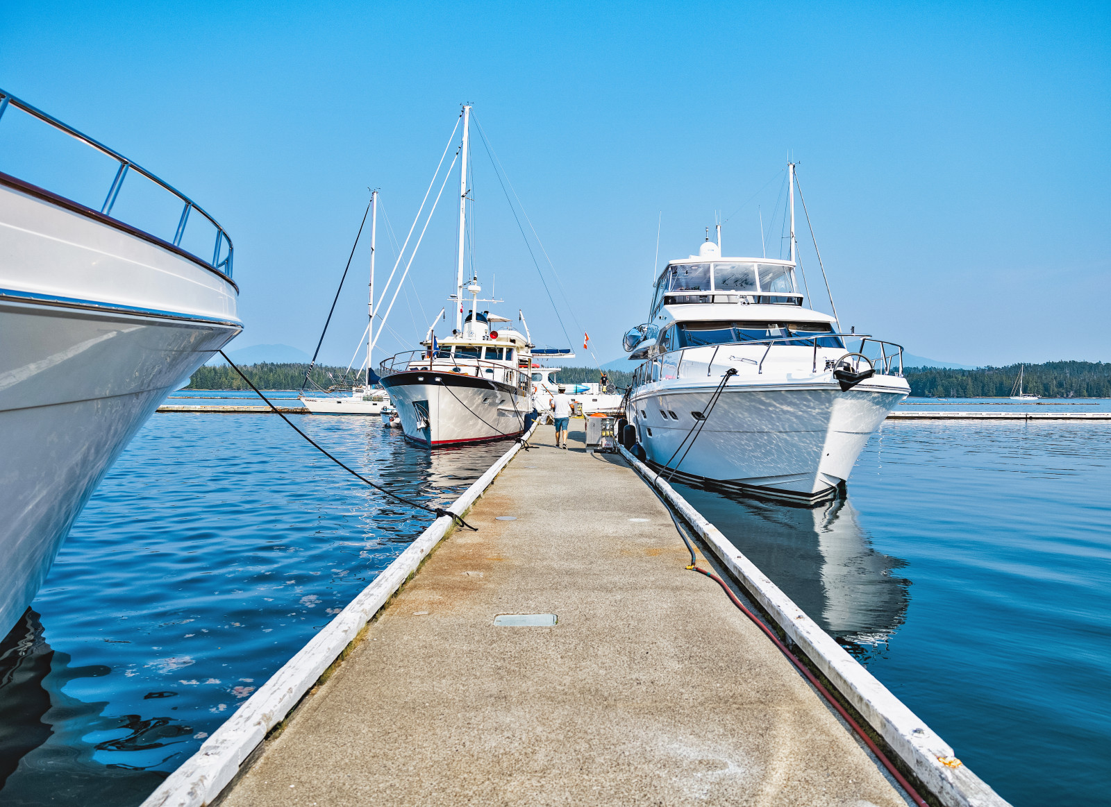 Mooring at Shearwater couldn’t be easier. Check in with the Harbourmaster at the harbour house to arrange payment, or contact moorage@shearwater.ca. Our rates are competitive and based on the linear length of your vessel. If you need power, we’ll be happy to turn on a breaker for you. We offer 15-, 30- and 50-amp service from multiple points on our dock. Looking to fuel up or get some basic supplies? Our fuel dock convenience store has you covered. In the peak season advance reservations are required to ensure we have a slip for you.